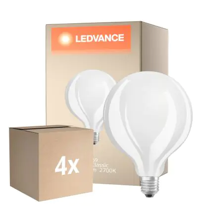 Die Mehrfachpackung 4x Osram Classic LED E27 Globe Fadenlampe Matt 17W 2452lm - 827 Extra Warmweiß | Ersatz Für 150W ist eine effiziente E27 LED-Lampe mit Retrodesign und der perfekte Ersatz für Ihre konventionellen 150W Lampen mit E27. Zudem strahlt sie Licht in der Farbtemperatur aus und punktet durch eine lange Lebensdauer.