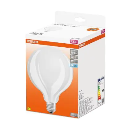 Die Mehrfachpackung 4x Osram Classic LED E27 Globe Fadenlampe Matt 17W 2452lm - 840 Kaltweiß | Ersatz Für 150W ist eine effiziente E27 LED-Lampe mit Retrodesign und der perfekte Ersatz für Ihre konventionellen 150W Lampen mit E27. Zudem strahlt sie Licht in der Farbtemperatur aus und punktet durch eine lange Lebensdauer.