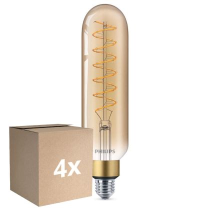 Die Mehrfachpackung 4x Philips Classic LED E27 Röhrenförmig Fadenlampe Gold 7W 470lm - 820 Extra Warmweiß | Ersatz Für 40W ist eine effiziente E27 LED-Lampe mit Retrodesign und der perfekte Ersatz für Ihre konventionellen 40W Lampen mit E27. Zudem strahlt sie Licht in der Farbtemperatur aus und punktet durch eine lange Lebensdauer.