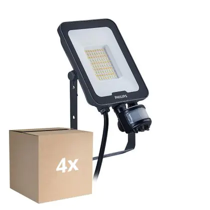 Beschreibung Mehrfachpackung 4x Philips LED-Scheinwerfer Ledinaire BVP167 30W 3600lm 110D - 830-840-865 CCT | IP65 - Bewegungs- und Lichtsensor - Symmetrisch