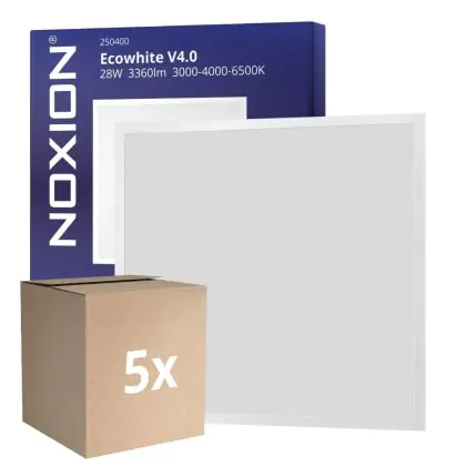 Das Mehrfachpackung 5x Noxion LED Panel Ecowhite V4.0 28W 3360lm - 830-840-865 CCT | 62x62cm - UGR ist ein modernes LED-Panel, welches Licht in der Farbtemperatur ausstrahlt und mit einer langen Lebensdauer punktet. Mit dem hochwertigen Panel, welches ideal als Allgemeinbeleuchtung verwendet werden kann, sparen Sie nicht nur Energiekosten, sondern steigen auch auf eine langlebige und flackerfreie Lichtlösung um.