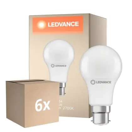Die Mehrfachpackung 6x Ledvance Performance LED Glühbirne B22d Birne Matt 8.5W 806lm - 827 Extra Warmweiß|Ersatz Für 60W ist eine effiziente B22 LED-Lampe und der perfekte Ersatz für Ihre konventionelle Halogenlampe mit 60W und einem B22-Sockel (Bajonettsockel). Zudem strahlt das Produkt Licht in der Farbtemperatur 2700K - Extra Warmweiß aus und punktet durch eine lange Lebensdauer.