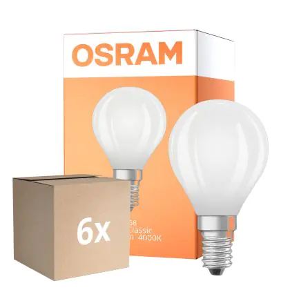 Beschreibung Mehrfachpackung 6x Osram Classic LED E14 Kugel Fadenlampe Matt 5.5W 806lm - 840 Kaltweiß | Dimmbar - Ersatz Für 60W