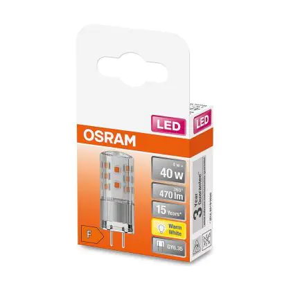 Die Mehrfachpackung 6x Osram Parathom LED Pin GY6.35 3.3W 470lm - 827 Extra Warmweiß | Ersatz Für 40W ist eine effiziente GY6.35 LED-Lampe und der perfekte Ersatz für Ihre konventionelle Halogenlampe mit 40W und einem GY6.35-Sockel. Die Stifte haben einen Abstand von 6,35 mm. Zudem strahlt das Produkt Licht in der Farbtemperatur aus und punktet durch eine lange Lebensdauer.