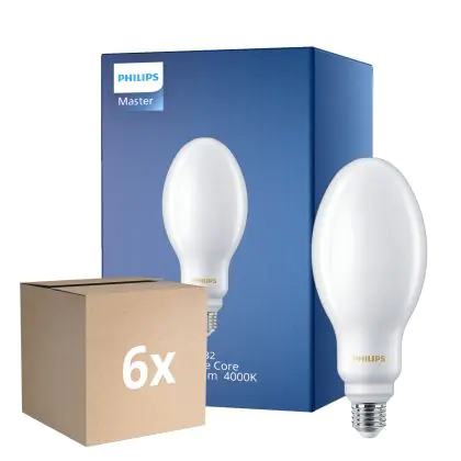 Die Mehrfachpackung 6x Philips LED TrueForce Core HPL E27 24.5W 4000lm - 840 Kaltweiß | Ersatz Für 125W ist eine effiziente HPL LED-Lampe und der perfekte Ersatz für Ihre konventionelle HPL-Gasentladungslampe. Zudem strahlt das Produkt Licht in der Farbtemperatur aus und punktet durch eine lange Lebensdauer.