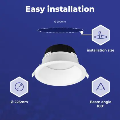 Beschreibung Noxion LED Downlight Hera Tief Einbau Weiß 21W 2400lm 100D - 827-830-840 CCT | 226mm - Ausschnitt 200mm