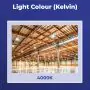Die LED-Hallenleuchte kommt mit der Farbtemperatur 4000K - Kaltweiß daher. Als Faustregel gilt: Je höher der Kelvinwert, desto natürlicher wirkt das Licht. Dies ist besonders in Hallen ohne Tageslichteinfall wichtig.