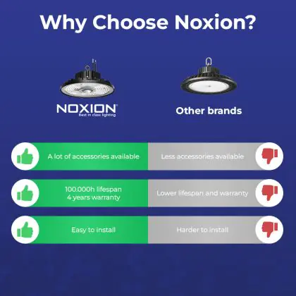 Wir von BeleuchtungDirekt haben mit der LED-Hallenleuchte von Noxion gute Erfahrungen gemacht. Daher bieten wir Ihnen für dieses Produkt eine Garantie von 4 Jahre an.