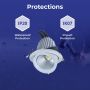 Die IP-Klasse gibt das Schutzlevel der Leuchte gegenüber Fremdkörper und Berührungen (erste Ziffer) und gegen Wasser (zweite Ziffer) an. Je höher die Ziffern sind, desto robuster und wasserabweisender ist die Leuchte. Ab dem IP44 ist der Spot unter bestimmten Bedingungen auch außen verwendbar - das Prädikat “wasserdicht” bekommt ein Einbaustrahler erst mit einem IP von mindestens 54.