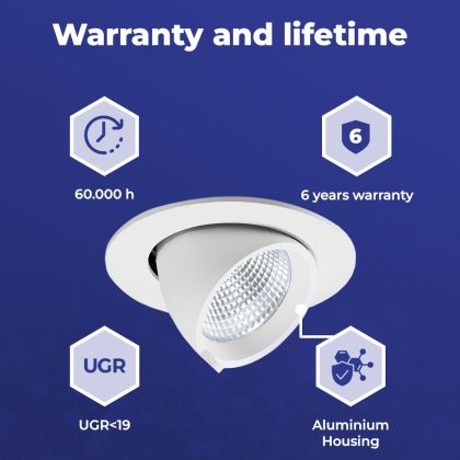 Wir von BeleuchtungDirekt haben mit dem LED-Einbauspot von Noxion gute Erfahrungen gemacht. Daher bieten wir Ihnen für dieses Produkt eine Garantie von 6 Jahre an.