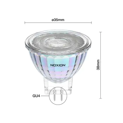 Die Noxion PerfectColor Led-Spot GU4 MR11 2.8W 184lm 36D - 927 Extra Warmweiß | Höchste Farbwiedergabe - Ersatz Für 20W ist eine effiziente GU4 LED-Lampe und der perfekte Ersatz für Ihre konventionelle Halogenlampe mit 20W und einem GU4-Sockel, bei welchem die beiden Stifte einen Abstand von 4 mm zueinander haben. Die Stifte haben einen Abstand von 4 mm. Die Abkürzung MR11 steht für den Reflektordurchmesser von ca. 3,5 cm. Zudem strahlt das Produkt Licht in der Farbtemperatur 2700K - Extra Warmweiß aus und punktet durch eine lange Lebensdauer.