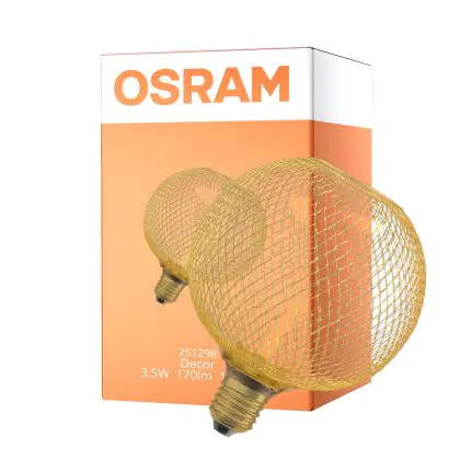 Die Osram Decor Spiral E27 Globe Fadenlampe Gold 3.5W 170lm - 818 Extra Warmweiß | Dimmbar - Ersatz Für 15W ist eine effiziente E27 LED-Lampe mit Retrodesign und der perfekte Ersatz für Ihre konventionellen 15W Lampen mit E27. Zudem strahlt sie Licht in der Farbtemperatur 1800K - Extra Warmweiß aus und punktet durch eine lange Lebensdauer.