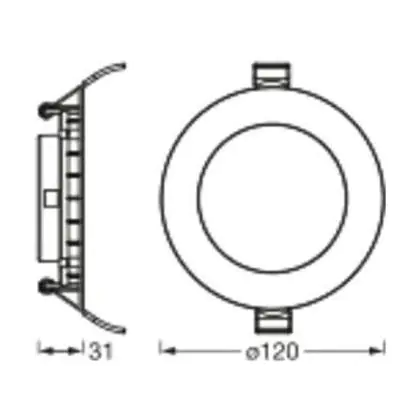 Beschreibung Osram LED Downlight Recess Slim Weiß 8W 550lm 110d - 865 Tageslichtweiß | Ausschnitt 120mm - IP20