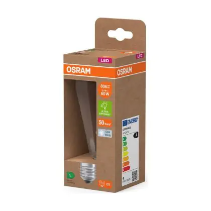Die Osram LED Lamps E27 Edison Fadenlampe Klar 3.8W 806lm - 840 Kaltweiß | Ersatz Für 60W ist eine effiziente E27 LED-Lampe mit Retrodesign und der perfekte Ersatz für Ihre konventionellen 60W Lampen mit E27. Zudem strahlt sie Licht in der Farbtemperatur 4000K - Kaltweiß aus und punktet durch eine lange Lebensdauer.
