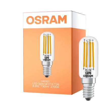 Beschreibung Osram LED Special E14 Tubular Glühbirne T26 Fadenlampe Klar 4.9W 730lm - 827 Extra Warmweiß | Ersatz Für 55W
