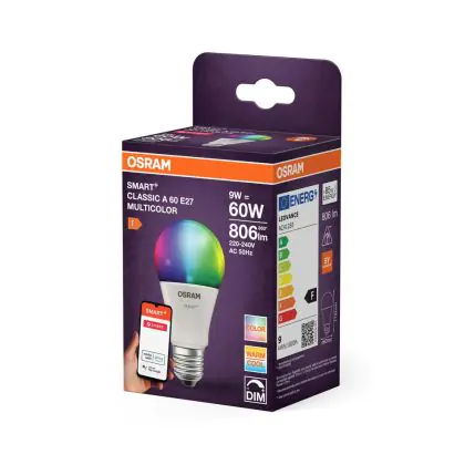 Die Osram Smart+ Classic LED E27 Birne Matt Multicolour RGBW 9W 806lm - 827-865 Abstimmbares Weiß | Zigbee Dimmbar - Ersatz Für 60W ist eine effiziente E27 LED-Lampe und der perfekte Ersatz für Ihre konventionellen 60W Lampen mit E27-Sockel. Zudem strahlt sie Licht in der Farbtemperatur aus und punktet durch eine lange Lebensdauer.