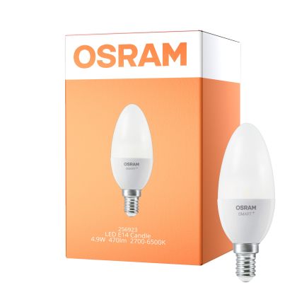 Die Osram Smart+ Matter Classic LED E14 Kerze Matt 4.9W 470lm - 827-865 Abstimmbares Weiß | Dimmbar - Ersatz Für 40W ist eine effiziente E14 LED-Lampe und der perfekte Ersatz für Ihre konventionellen 40W Lampen mit E14-Sockel. Zudem strahlt sie Licht in der Farbtemperatur aus und punktet durch eine lange Lebensdauer.