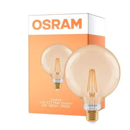 Die Osram Smart+ Matter E27 Globe Fadenlampe Gold 6W 680lm - 824 Extra Warmweiß | Dimmbar - Via Smart Device Only - Ersatz Für 60W ist eine effiziente E27 LED-Lampe mit Retrodesign und der perfekte Ersatz für Ihre konventionellen 60W Lampen mit E27. Zudem strahlt sie Licht in der Farbtemperatur aus und punktet durch eine lange Lebensdauer.