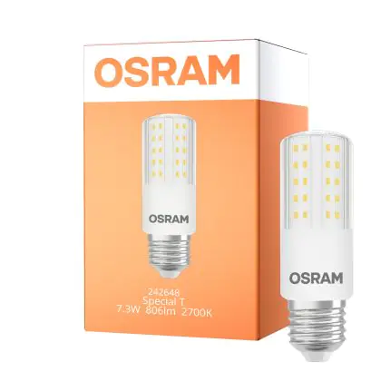 Die Special T LED-Lampe von Osram überzeugt als Alternative zu 60 W Lampen mit bis zu 90 % Energieeinsparung, einer hohen Farbwiedergabestufe und mit einer extra warmweißen Farbtemperatur. Durch die geringen Wartungs- und Ersatzkosten erfolgt eine Amortisation während der Garantielaufzeit.