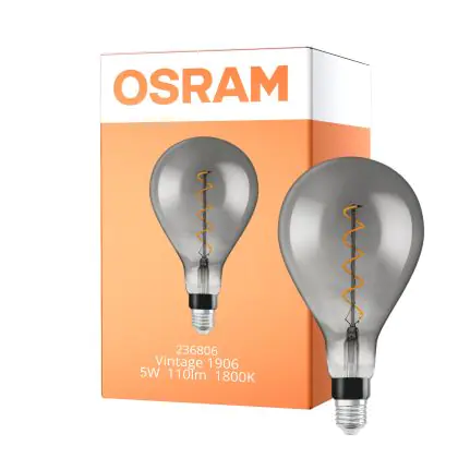 Die Osram Vintage 1906 LED E27 Birne Fadenlampe Smoke 5W 110lm - 818 Extra Warmweiß | Ersatz für 15W ist eine effiziente E27 LED-Lampe mit Retrodesign und der perfekte Ersatz für Ihre konventionellen 12W Lampen mit E27. Zudem strahlt sie Licht in der Farbtemperatur 1800K - Extra Warmweiß aus und punktet durch eine lange Lebensdauer.