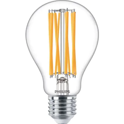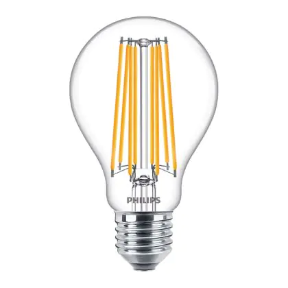 Die Philips Corepro LED Glühbirne E27 Birne Klar 17W 2452lm - 827 Extra Warmweiß | Ersatz für 150W ist eine effiziente E27 LED-Lampe und der perfekte Ersatz für Ihre konventionellen 150W Lampen mit E27-Sockel. Zudem strahlt sie Licht in der Farbtemperatur 2700K - Extra Warmweiß aus und punktet durch eine lange Lebensdauer.