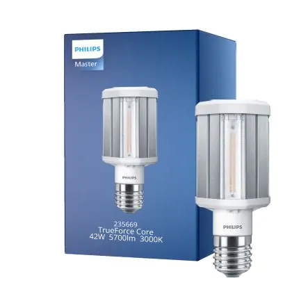Die Philips TrueForce LED HPL E40 42W 830 ist die ideale Außenbeleuchtung und ersetzt herkömmliche HPL/HQL- und SON/NAV-Gasentladungslampen. Mit LED profitieren Sie von hohen Energieeinsparungen und einer extrem langen Lebensdauer. Dank der hohen Effizienz bietet die TrueForce LED-Lampe gleichzeitig eine hohe Leuchtkraft.
