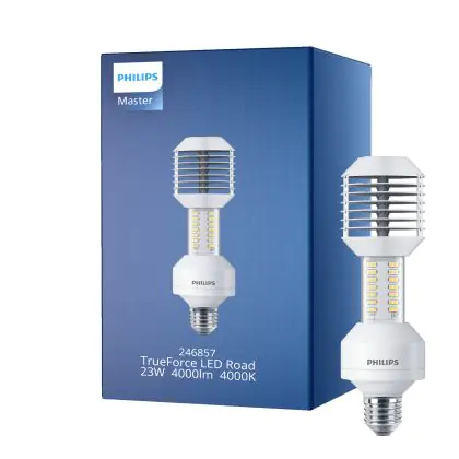 Die Philips TrueForce öffentlich (Straßen – SON) Master LED SON-T IF E27 23W 4000lm - 740 Kaltweiß | Ersatz für 50W ist eine effiziente LED-Gasentladungslampe und der perfekte Ersatz für Ihre konventionelle Gasentladungslampe. Zudem strahlt das Produkt Licht in der Farbtemperatur 4000K - Kaltweiß aus und punktet durch eine lange Lebensdauer.